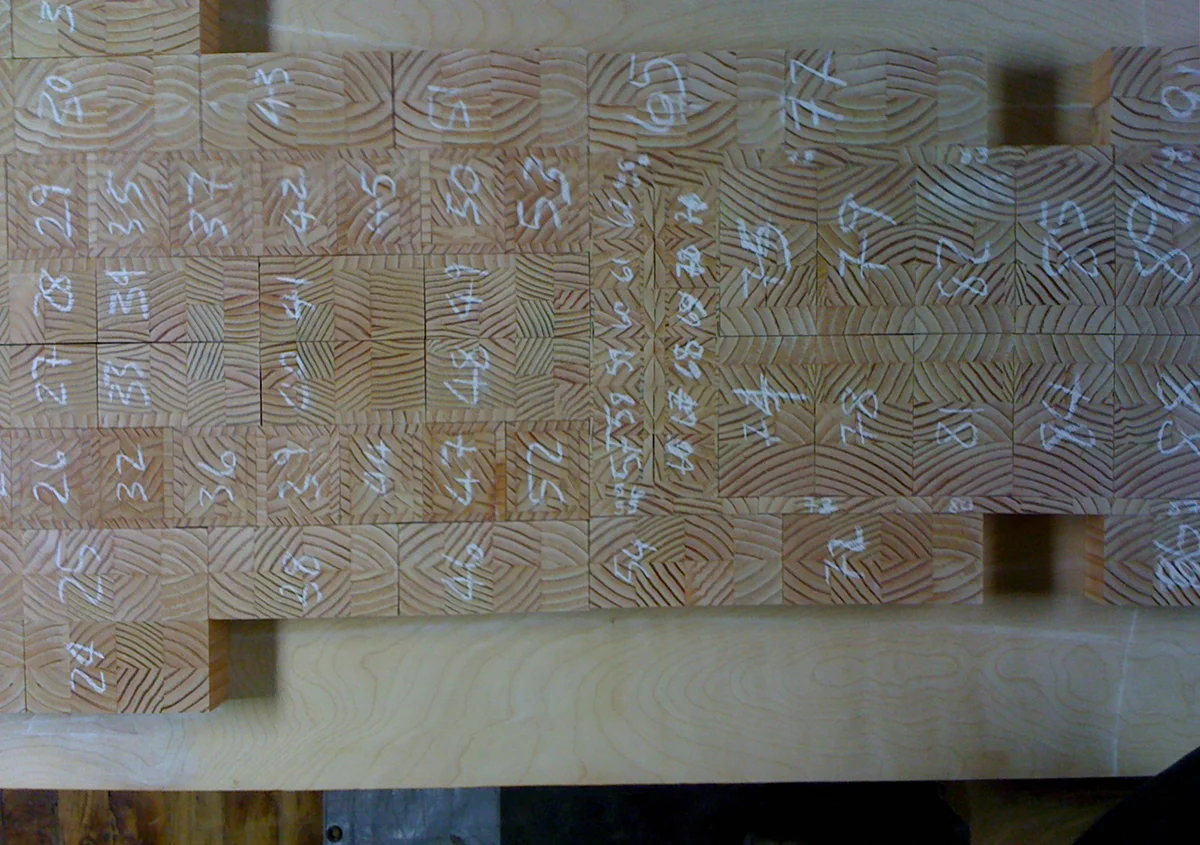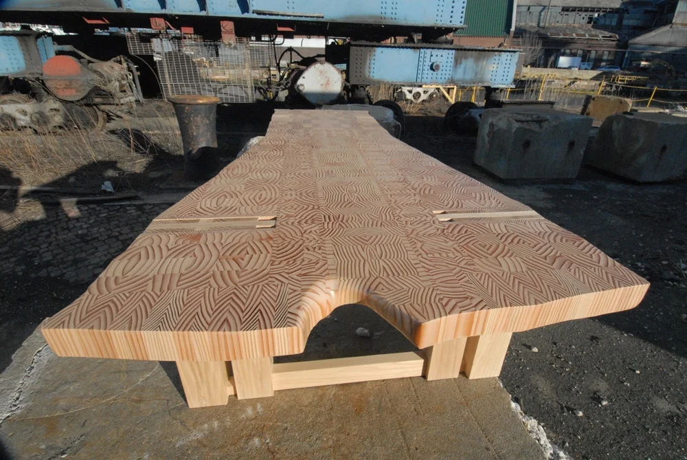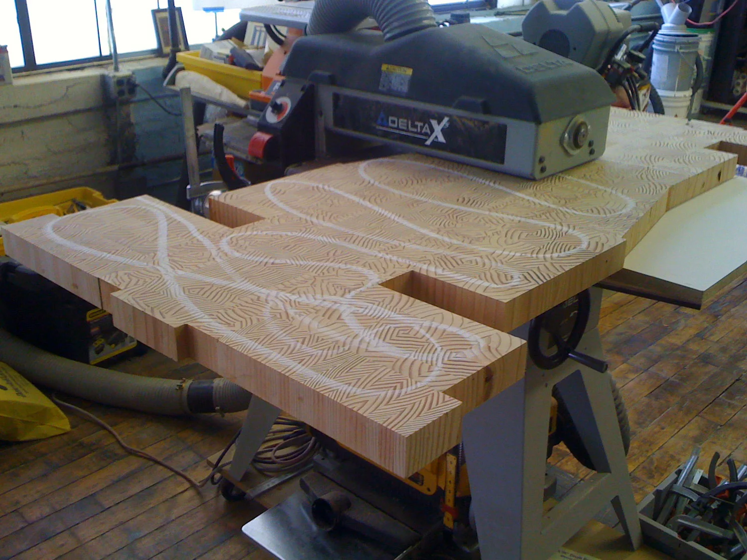 The idea behind this table was to explore the old world technique of parquetry by extending it beyond its typically decorative application. I am drawn into the ironies of this piece, from the organic fir tree to dimensional framing lumber, which then gets cut into even more precise squares and triangles produced by parquetry. The project then becomes organic again by shaping the slab, creating a kind of simulacrum of a tree – a parquet-tree.